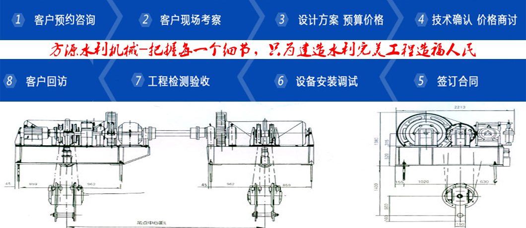 方源水利機(jī)械是制造、銷售、安裝一體化的規(guī)模型水利工程機(jī)械生產(chǎn)企業(yè),產(chǎn)品有卷揚(yáng)式啟閉機(jī)、螺桿式啟閉機(jī)、抓斗式清污機(jī)、抓斗清污機(jī)、